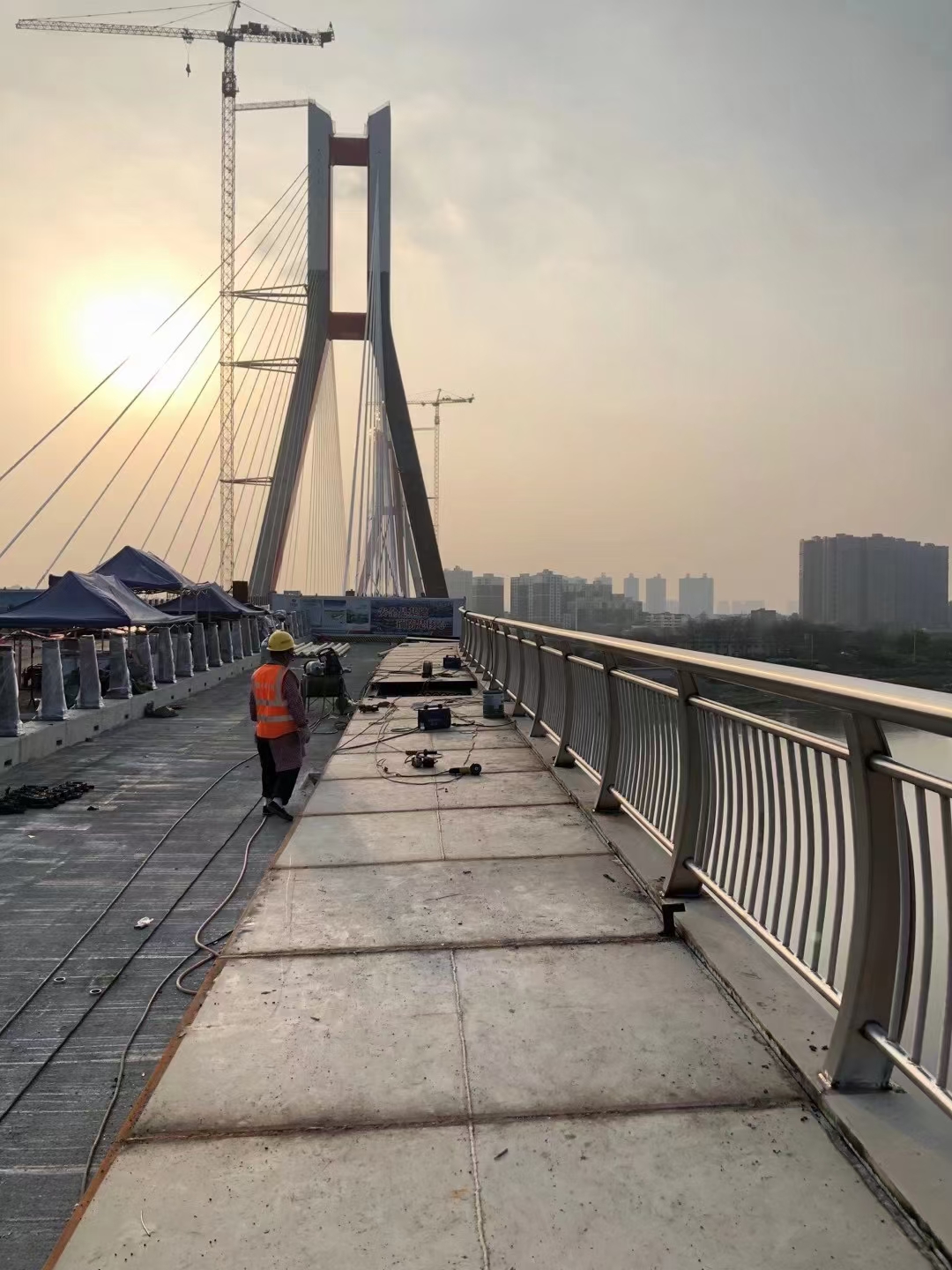 復(fù)檢與普通橋梁護(hù)欄相比,惡劣環(huán)境中不銹鋼復(fù)合管護(hù)欄表面處理工作不銹鋼復(fù)合管護(hù)欄的質(zhì)量要求 不銹鋼復(fù)合管護(hù)欄管壁厚要均勻、內(nèi)外表面缺陷少;要配置外表面拋光及內(nèi)孔缺陷清理設(shè)備。不銹鋼復(fù)合管護(hù)欄生產(chǎn)增加了熱軋毛管酸洗復(fù)檢工序,主要是要保證毛管外表面無(wú)折疊、裂紋等缺陷,排除掉內(nèi)表面存在折疊、嚴(yán)重劃線、麻面等缺陷的毛管。不銹鋼復(fù)合管護(hù)欄在所有的不銹鋼復(fù)合管護(hù)欄生產(chǎn)中是非常重要的工序,退火質(zhì)量的好壞既影響橋梁護(hù)欄的性能也影響氧化鐵皮的清除,不銹鋼復(fù)合管護(hù)欄需要配置無(wú)氧化光亮退火爐設(shè)備,酸洗不銹鋼復(fù)合管護(hù)欄在硫酸酸洗過(guò)程中容易形成以Fe2O3Fe3O4為主的黑渣”后續(xù)生產(chǎn)中形成表面黑斑。不銹鋼復(fù)合管護(hù)欄的潤(rùn)滑應(yīng)選用樹(shù)脂作潤(rùn)滑劑,這種潤(rùn)滑與磷化加潤(rùn)滑(皂化)相比有明顯的區(qū)別,拔制出來(lái)的橋梁護(hù)欄呈現(xiàn)鐵基體的本色,既有高的光潔度又有冷軋管般的漂亮外觀色澤。不銹鋼復(fù)合管護(hù)欄的表面處理工作 橋梁護(hù)欄可以在很多惡劣環(huán)境中使用,但是可能會(huì)出現(xiàn)銹蝕現(xiàn)象,應(yīng)該及時(shí)處理掉不銹鋼復(fù)合管護(hù)欄表面的銹,增加使用壽命。下面具體介紹一下不銹鋼復(fù)合管護(hù)欄的除銹流程。1清洗 利用溶劑、乳劑清洗鋼材表面,以達(dá)到去除油、油脂、灰塵、潤(rùn)滑劑和類(lèi)似的有機(jī)物,但它不能去除鋼材表面的銹、氧化皮、焊藥等,因此在防腐生產(chǎn)中只作為輔助手段。2工具除銹 主要使用鋼絲刷等工具對(duì)鋼材表面進(jìn)行打磨,可以去除松動(dòng)或翹起的氧化皮、鐵銹、焊渣等。手動(dòng)工具除銹能達(dá)到Sa2級(jí),動(dòng)力工具除銹可達(dá)到Sa3級(jí),若鋼材表面附著牢固的氧化鐵皮,工具除銹效果不理想,達(dá)不到防腐施工要求的錨紋深度。3酸洗 般用化學(xué)和電解兩種方法做酸洗處理,管道防腐只采用化學(xué)酸洗,可以去除氧化皮、鐵銹、舊涂層,有時(shí)可用其作為噴砂除銹后的再處理。